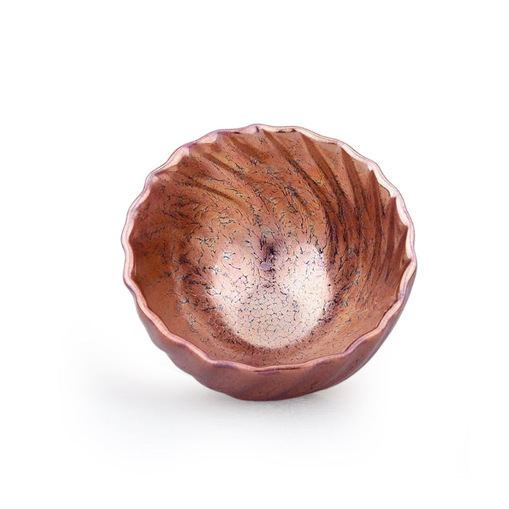 Where the soft glow of peach light meets the quiet motion of flowing sand.This handcrafted Tenmoku teacup features a warm, copper-pink glaze that swirls gently around the body like wind-swept dunes....