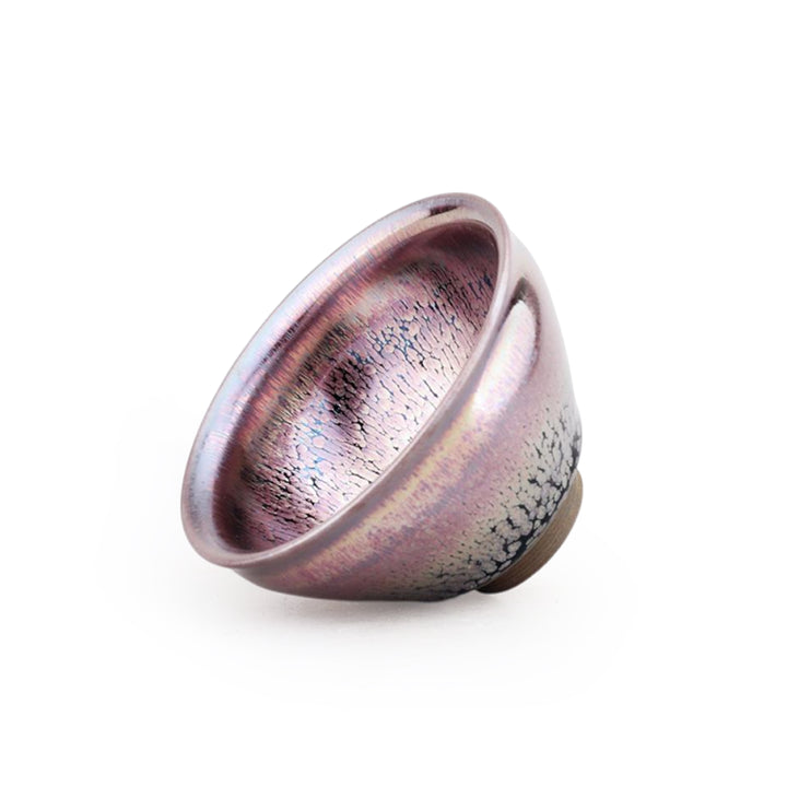 Forged in the heart of the flame, where violet fire meets molten gold.This exquisite Tenmoku teacup is born from ancient Jian Zhan techniques, its iridescent glaze capturing the fleeting moment when...